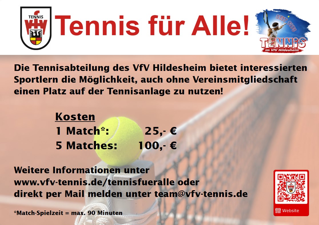 Die Tennisabteilung des VfV Hildesheim verfügt über fünf Rotgrand-Sandplätze, eine gepflegte Außenanlage mit Terrassen, Umkleide- und Aufenthaltsräumen.